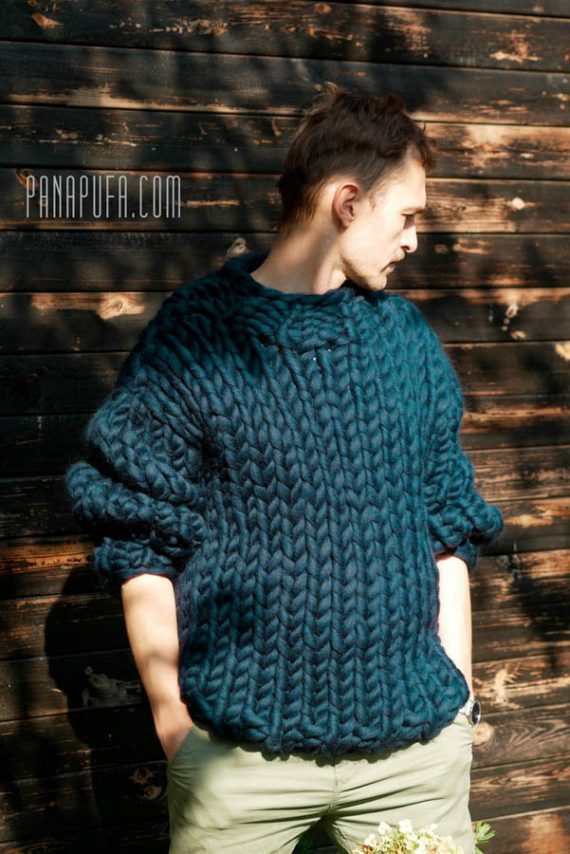 Very warm and fashionable chunky knitted men’s sweater made of 100% handspun Big Bob wool.